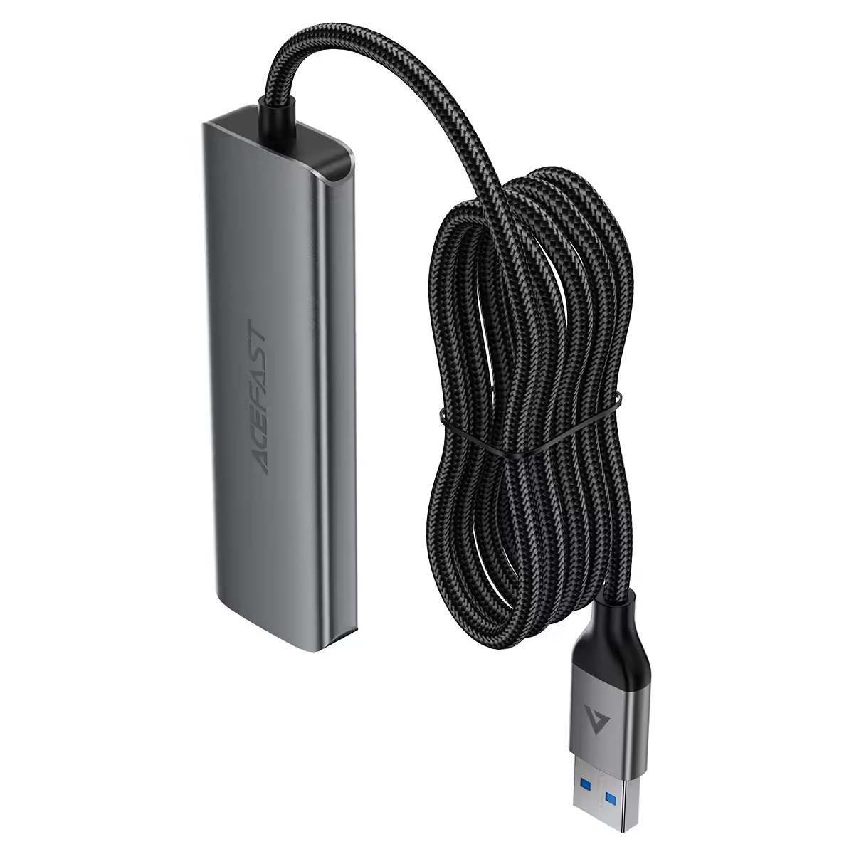 • ДизайнХаб Acefast J17 виконаний у сучасному мінімалістичному дизайні з комбінації алюмінієвого сплаву, нейлонової оплетки кабелю та ABS-матеріалу. Компактні розміри (95 × 30 × 11.6 мм) і вага 59 г разом із довгим нейлоновим кабелем довжиною 1 м роблять його дуже зручним для стаціонарного використання за столом або в офісі. Металевий корпус виглядає преміально, добре розсіює тепло та захищає від подряпин, підкреслюючи якісний підхід бренду ACEFAST.