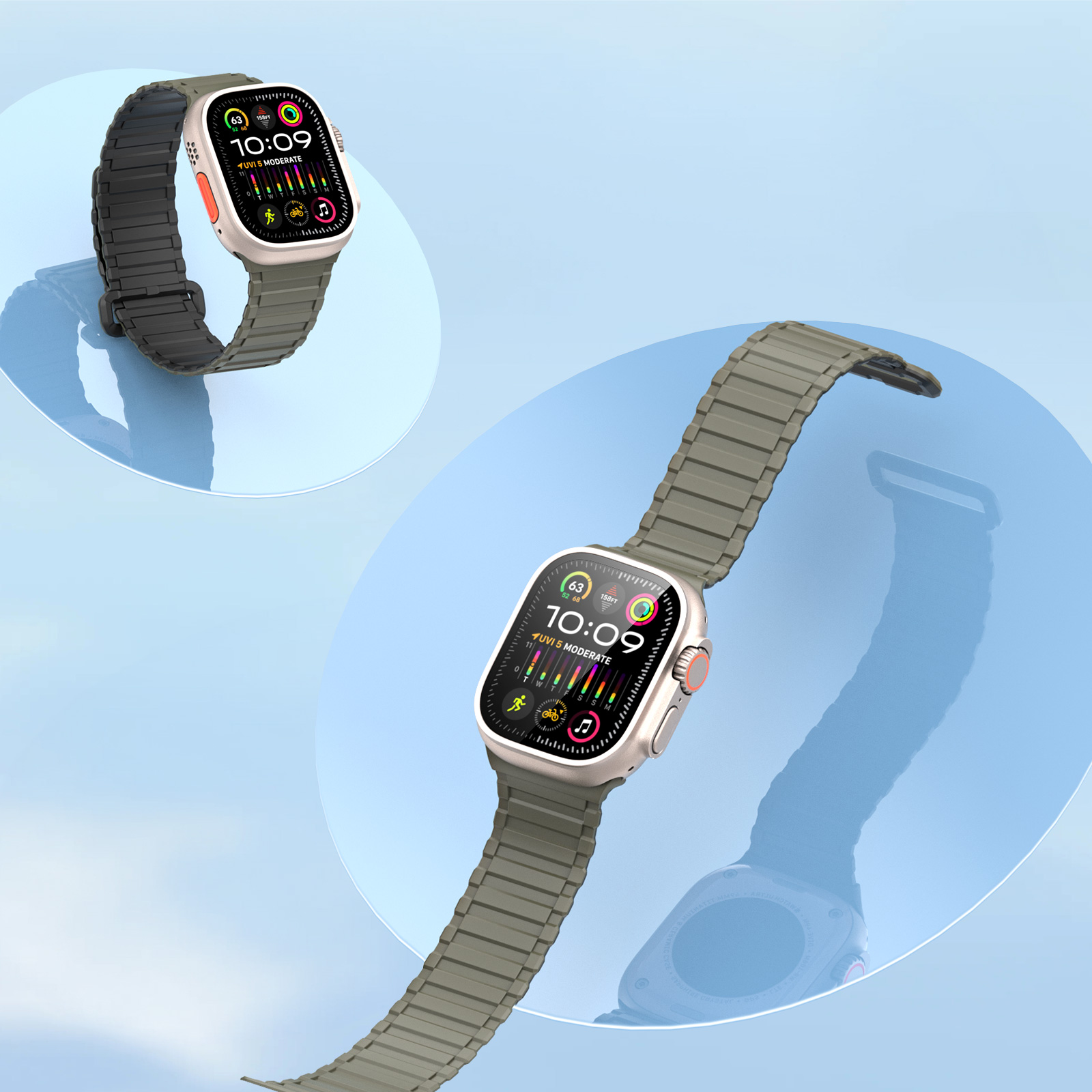 Ремінець DUX DUCIS KJ Series створений із використанням високоякісного силікону та вбудованих магнітів (N50M), що забезпечують надійну фіксацію та комфорт протягом усього дня. Магнітна застібка дозволяє легко регулювати довжину ремінця, гарантуючи щільне прилягання без тиску на шкіру, що особливо важливо під час інтенсивних тренувань. Матеріал стійкий до зносу, легко миється і підходить для використання в різних умовах, від офісних буднів до спортивних активностей. Ремінець сумісний із широким рядом моделей Apple Watch, а його конструкція з магнітним кріпленням забезпечує швидке встановлення без пошкодження годинника.
