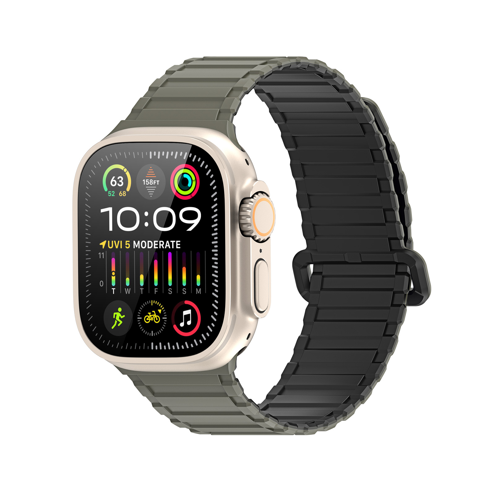 Ремінець DUX DUCIS KJ Series для Apple Watch поєднує сучасний стиль і практичність, що робить його ідеальним вибором для щоденного використання. Виготовлений із м’якого силікону з плетеною текстурою, він виглядає елегантно та забезпечує комфорт при носінні. Доступний у стильних кольорових комбінаціях – Black-Green і Starlight-Orange – ремінець додає індивідуальності вашому Apple Watch, гармонійно доповнюючи будь-який образ. Магнітна застібка забезпечує легке надягання та знімання, а регульована довжина дозволяє ідеально підлаштувати ремінець під розмір зап’ястя. Компактний і легкий дизайн робить його зручним як для повсякденного носіння, так і для активного способу життя, підкреслюючи естетику та функціональність.