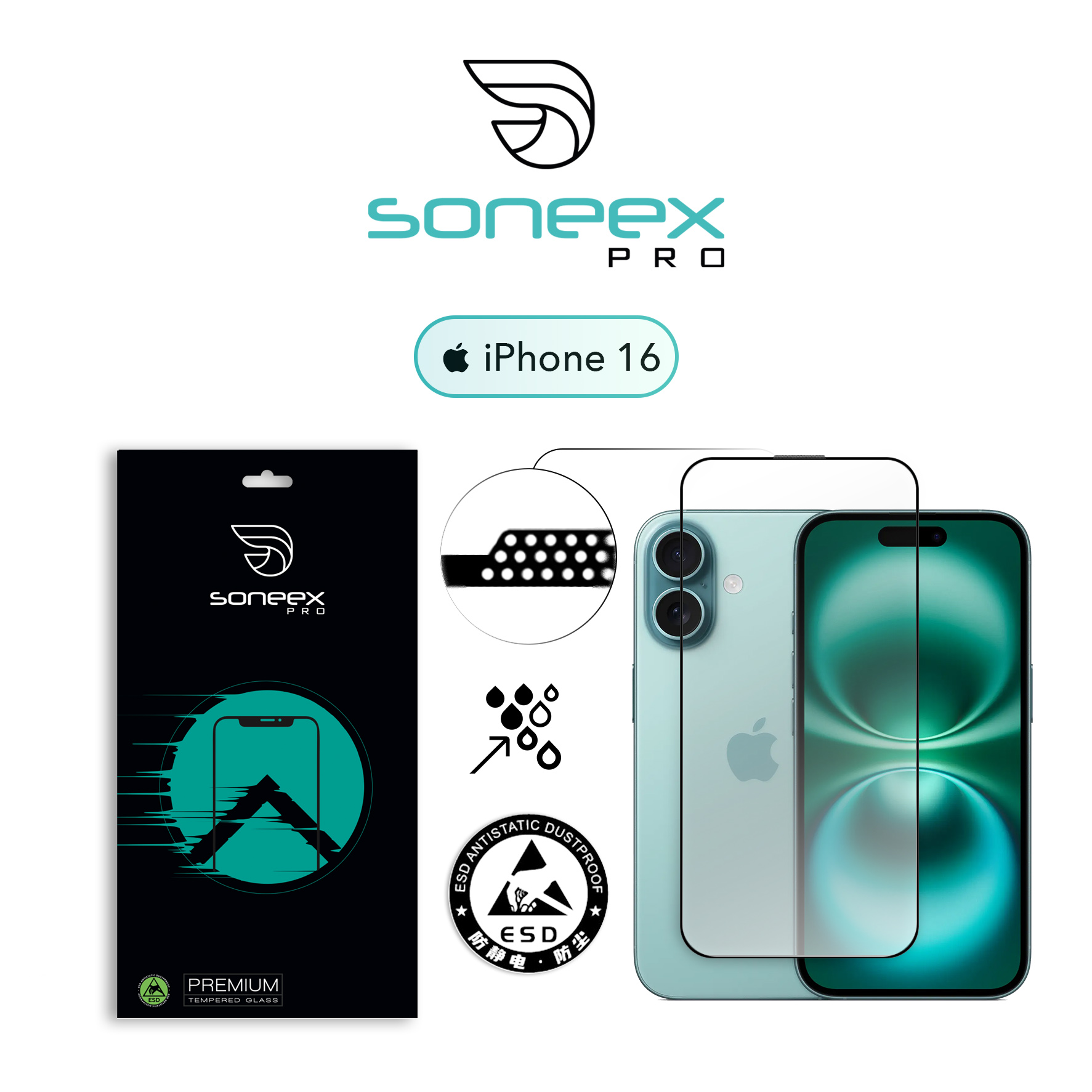 Захисне скло Soneex Pro для iPhone 14 Pro/15/16 2.5D Full Screen