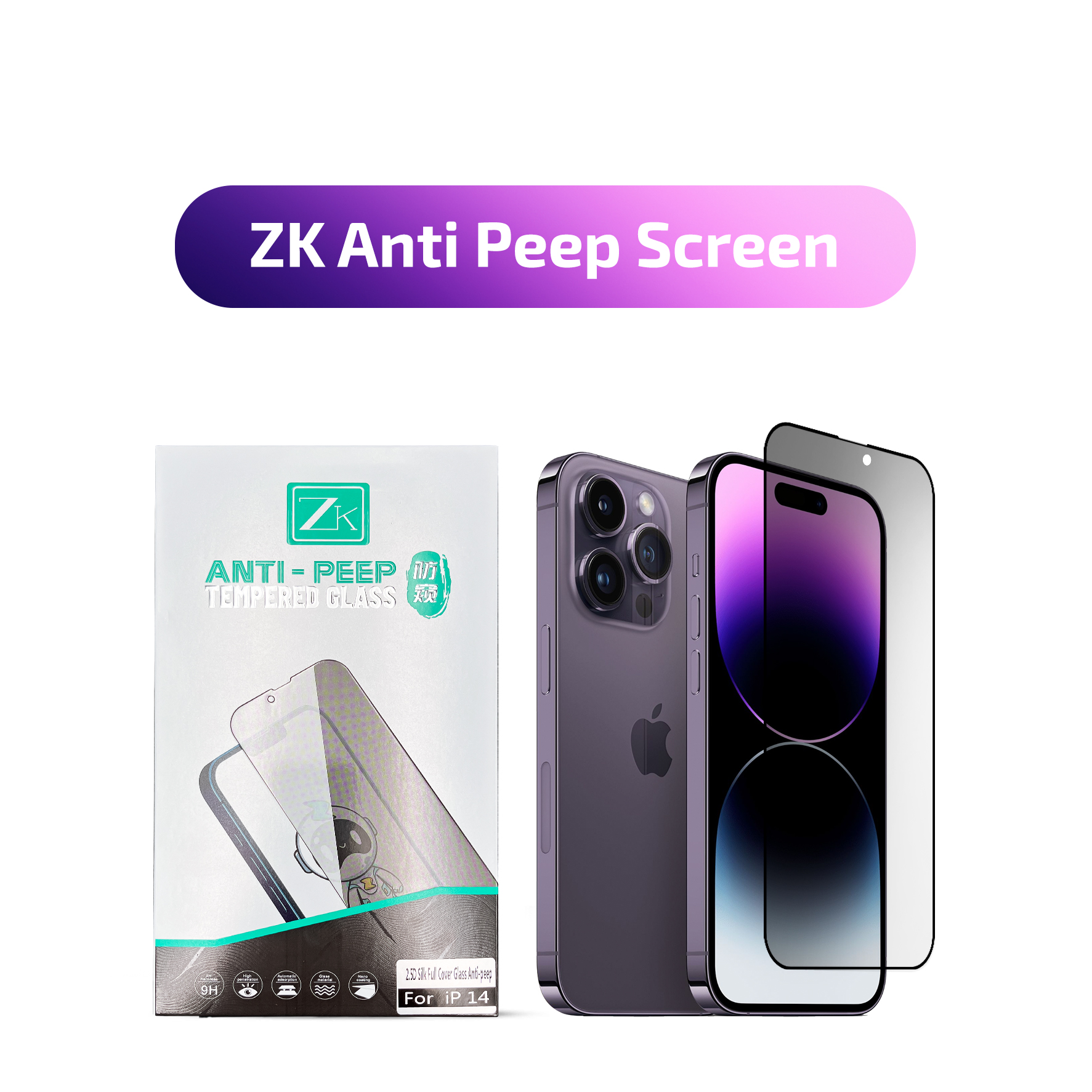 Захисне скло ZK для iPhone 14 Pro Max 2.5D Anti Peep